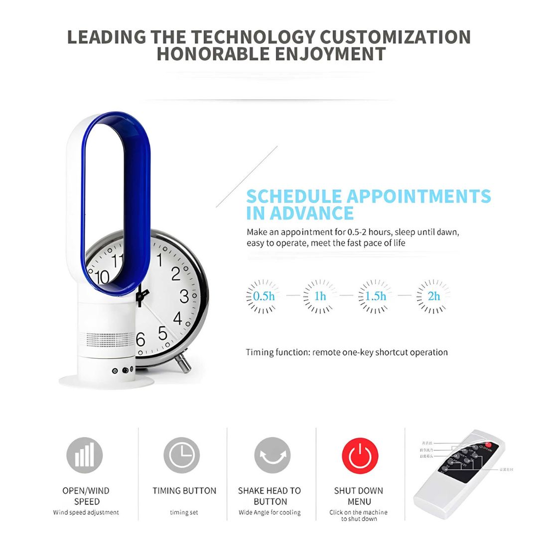 Améliorez votre environnement domestique avec le Ventilateur sans pale. Sa structure sans lame garantit la sécurité des enfants et des animaux domestiques, tandis que son aspect élégant et moderne rehausse le décor de n’importe quelle pièce.
