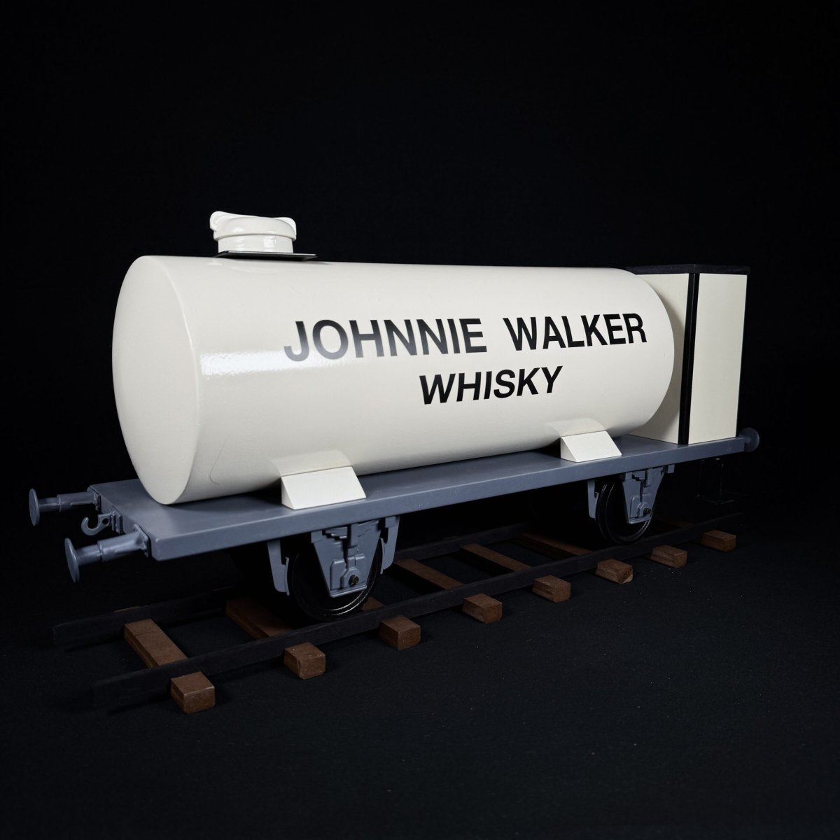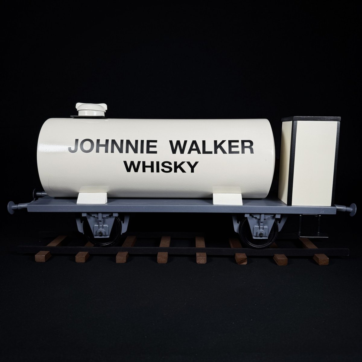 Wagon blanc Artoucheff Johnnie Walker dans un état remarquable. Objet mythique de « L’île noire » très dynamique, d’une rareté absolue, seulement quelques dizaines d’exemplaires (toutes versions confondues). En bois polychrome par M. Aroutcheff.