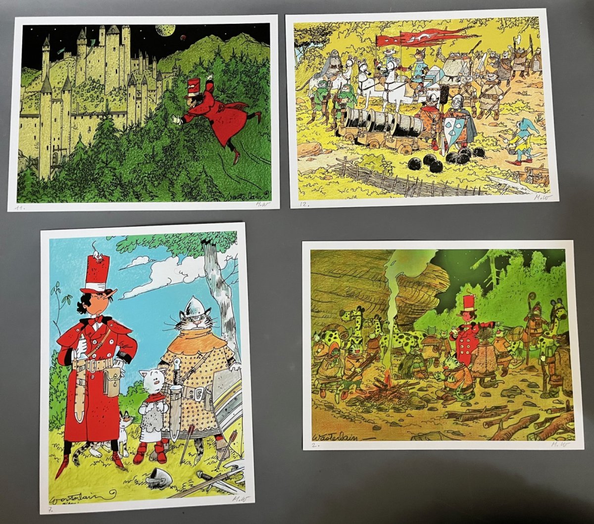 Portfolio avec 12 reproductions offset – 2 lettre dactylographiées – Chaque reproduction est numérotée et signée par Wasterlain avec ses initiales