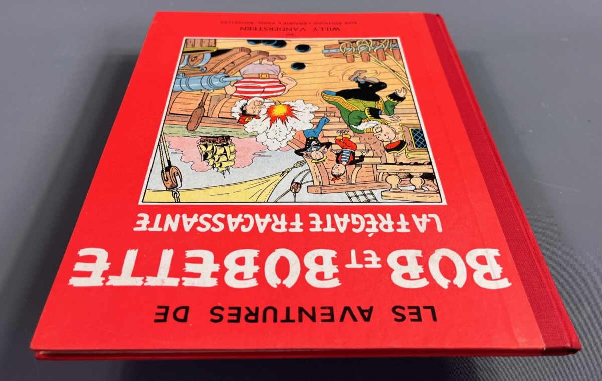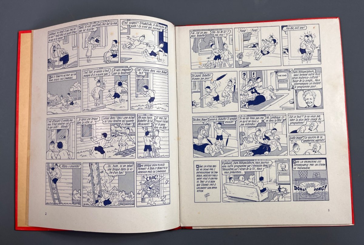 Edition originale du T17 des Aventures de Bob et Bobette – Français – Dos toilé rouge – 2e plat 17 titres parus + 1 à paraître – La numérotation commence à 3 avec La princesse enchantée
