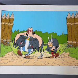 Uderzo – Asterix et Obelix – Sérigraphie retour de chasse – Signée – Equinoxe – (1997)