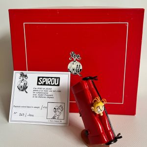 Franquin – Figurine Gaston dans sa voiture – Pixi – Grand modèle signé – 1992